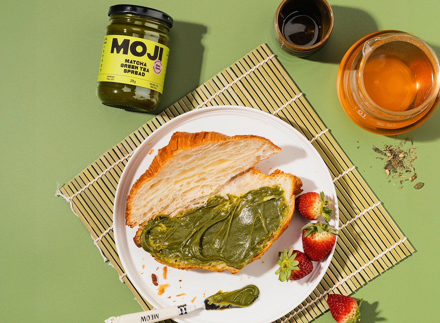 Lusciously spread Moji over a fresh and flakey croissant with a smidge of strawberry jam. You’ll love it!